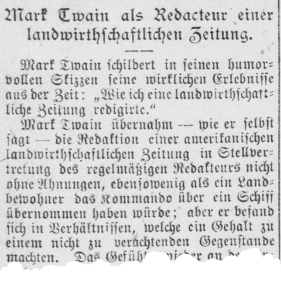 Mark Twain als Redacteur einer landwirthschaftlichen Zeitung | 9 Jul 1894