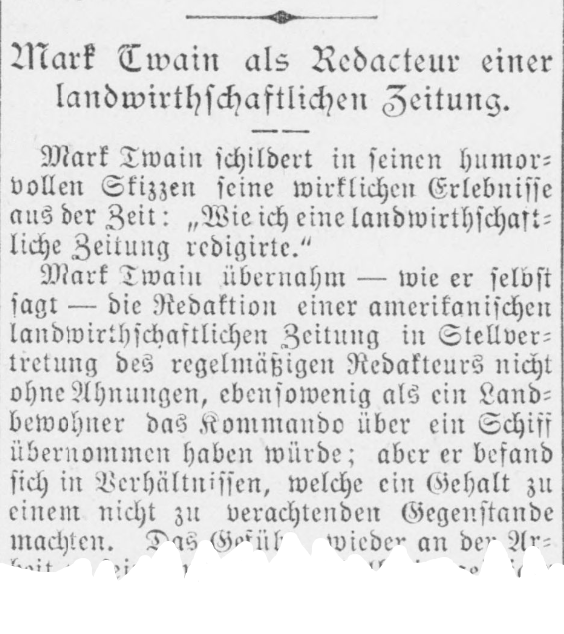 Mark Twain als Redacteur einer landwirthschaftlichen Zeitung | 23 Jul 1894