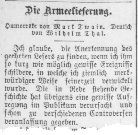 | Humoreske von Mark Twain. Deutsch von Wilhelm Thal. | {Humorous story by Mark Twain. Translated into German by Wilhelm Thal.} |